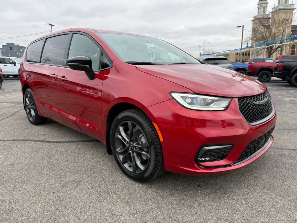 Third Row Seat, Quad Bucket Seats, Power Liftgate, Rear Air, Heated Driver Seat, Back-Up Camera, Satellite Radio, iPod/MP3 Input, Onboard Communications System, Remote Engine Start, Dual Zone A/C, Power Fourth Passenger Door, Smart Device Integration, Apple CarPlay®, Blind Spot Monitor. Chrysler Select with Red Hot Pearlcoat exterior and Black interior features a V6 Cylinder Engine with 287 HP at 6400 RPM*.